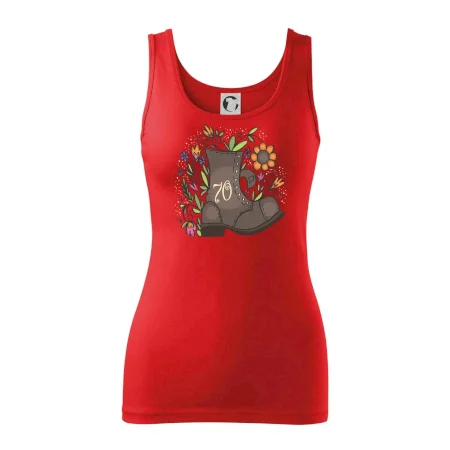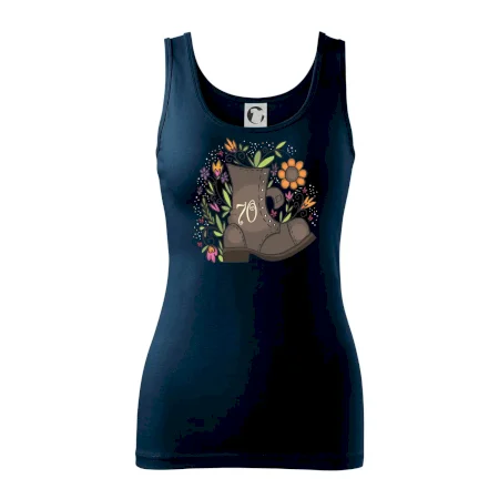 Narodeninové tričko pre oslávenca, ktorý oslavuje jubileum 70 rokov. Tričko, na ktorom je stará topánka s číslovkou 70. Darček k sedemdesiatym narodeninám.
