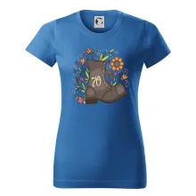 Narodeninové tričko pre oslávenca, ktorý oslavuje jubileum 70 rokov. Tričko, na ktorom je stará topánka s číslovkou 70. Darček k sedemdesiatym narodeninám.
