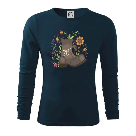 Narodeninové tričko pre oslávenca, ktorý oslavuje jubileum 70 rokov. Tričko, na ktorom je stará topánka s číslovkou 70. Darček k sedemdesiatym narodeninám.
