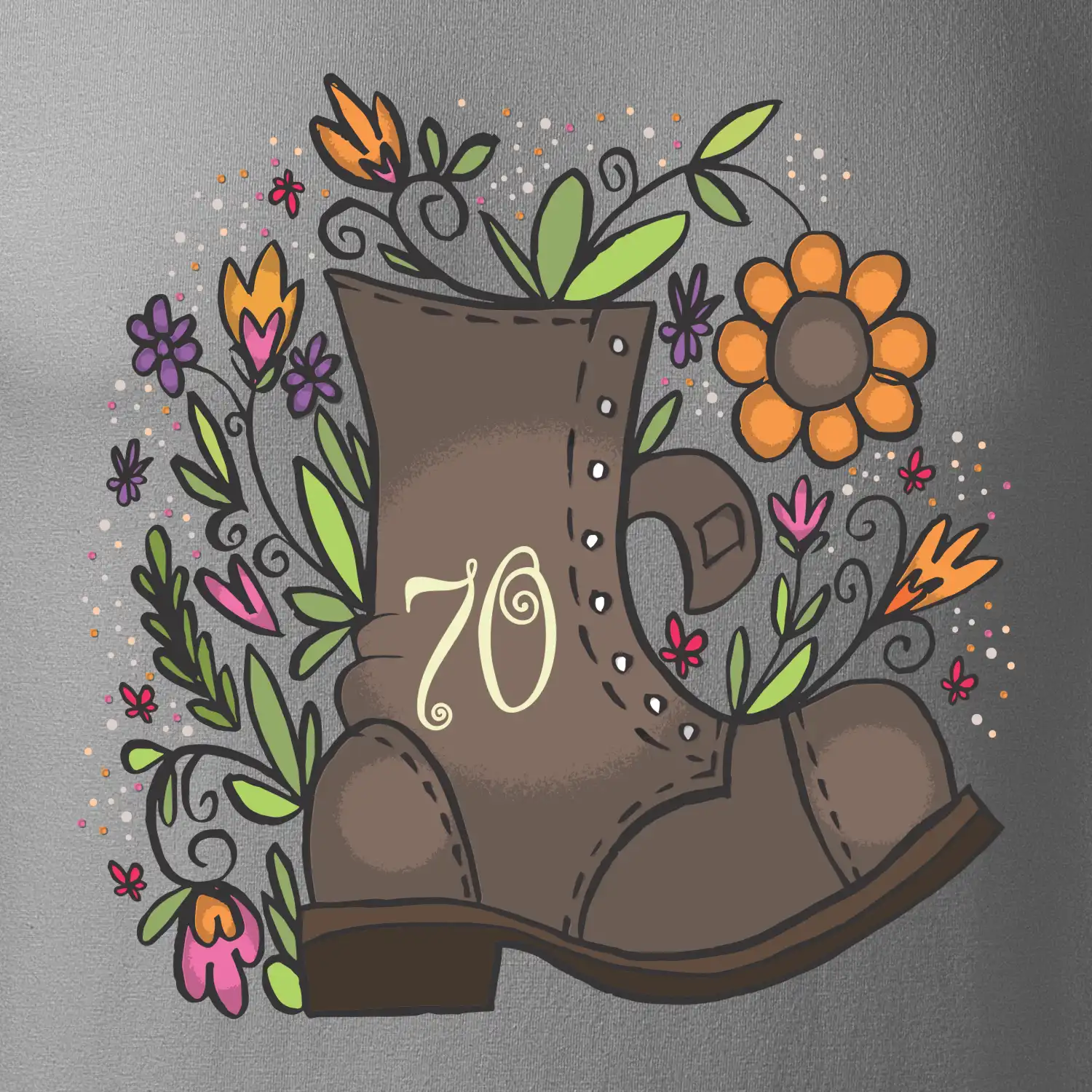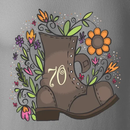 Narodeninové tričko pre oslávenca, ktorý oslavuje jubileum 70 rokov. Tričko, na ktorom je stará topánka s číslovkou 70. Darček k sedemdesiatym narodeninám.