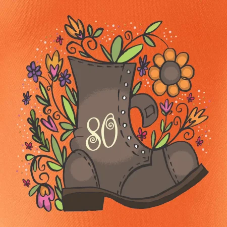 Narodeninové tričko pre oslávenca, ktorý oslavuje jubileum 80 rokov. Tričko, na ktorom je stará topánka s číslovkou 80. Darček k osemdesiatym narodeninám.