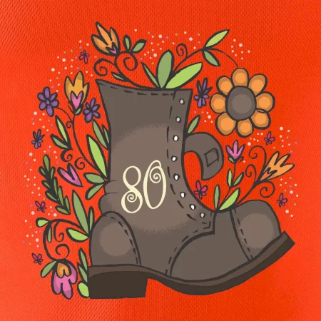 Narodeninové tričko pre oslávenca, ktorý oslavuje jubileum 80 rokov. Tričko, na ktorom je stará topánka s číslovkou 80. Darček k osemdesiatym narodeninám.