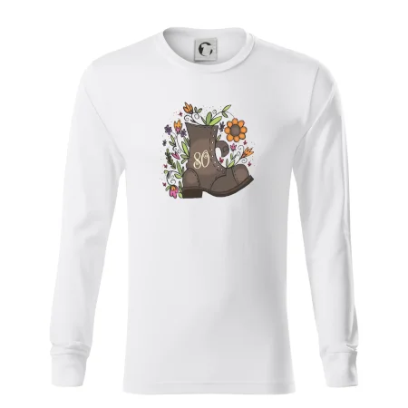 Narodeninové tričko pre oslávenca, ktorý oslavuje jubileum 80 rokov. Tričko, na ktorom je stará topánka s číslovkou 80. Darček k osemdesiatym narodeninám.