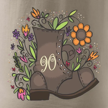 Narodeninové tričko pre oslávenca, ktorý oslavuje jubileum 90 rokov. Tričko, na ktorom je stará topánka s číslovkou 90. Darček k deväťdesiatym narodeninám.
