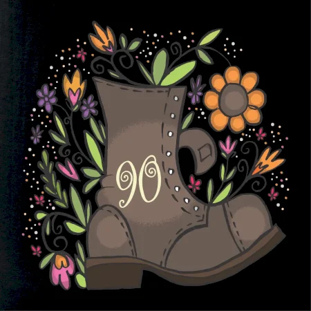 Narodeninové tričko pre oslávenca, ktorý oslavuje jubileum 90 rokov. Tričko, na ktorom je stará topánka s číslovkou 90. Darček k deväťdesiatym narodeninám.