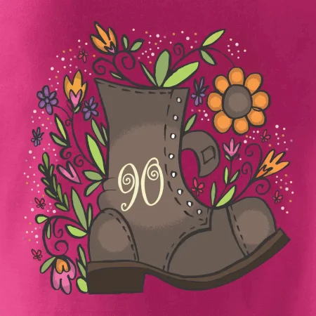 Narodeninové tričko pre oslávenca, ktorý oslavuje jubileum 90 rokov. Tričko, na ktorom je stará topánka s číslovkou 90. Darček k deväťdesiatym narodeninám.