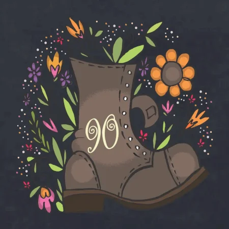 Narodeninové tričko pre oslávenca, ktorý oslavuje jubileum 90 rokov. Tričko, na ktorom je stará topánka s číslovkou 90. Darček k deväťdesiatym narodeninám.