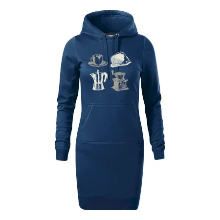 Dámske mikinové šaty MALFINI Snap 419 sú ideálnou voľbou pre ženy, ktoré hľadajú pohodlný a štýlový kúsok na voľný čas alebo každodenné nosenie. Ľahko vypasovaný strih s bočnými švami podčiarkuje ženskú siluetu, zatiaľ čo kapucňa s podšívkou a sťahovacou šnúrkou dodáva ležérny vzhľad. Šaty majú dĺžku nad kolená a sú vybavené našitým vreckom v štýle „klokanky“. Materiál je mäkký a príjemný na dotyk grâce à smesi bavlny a polyesteru s nepočesanou vnútornou stranou.