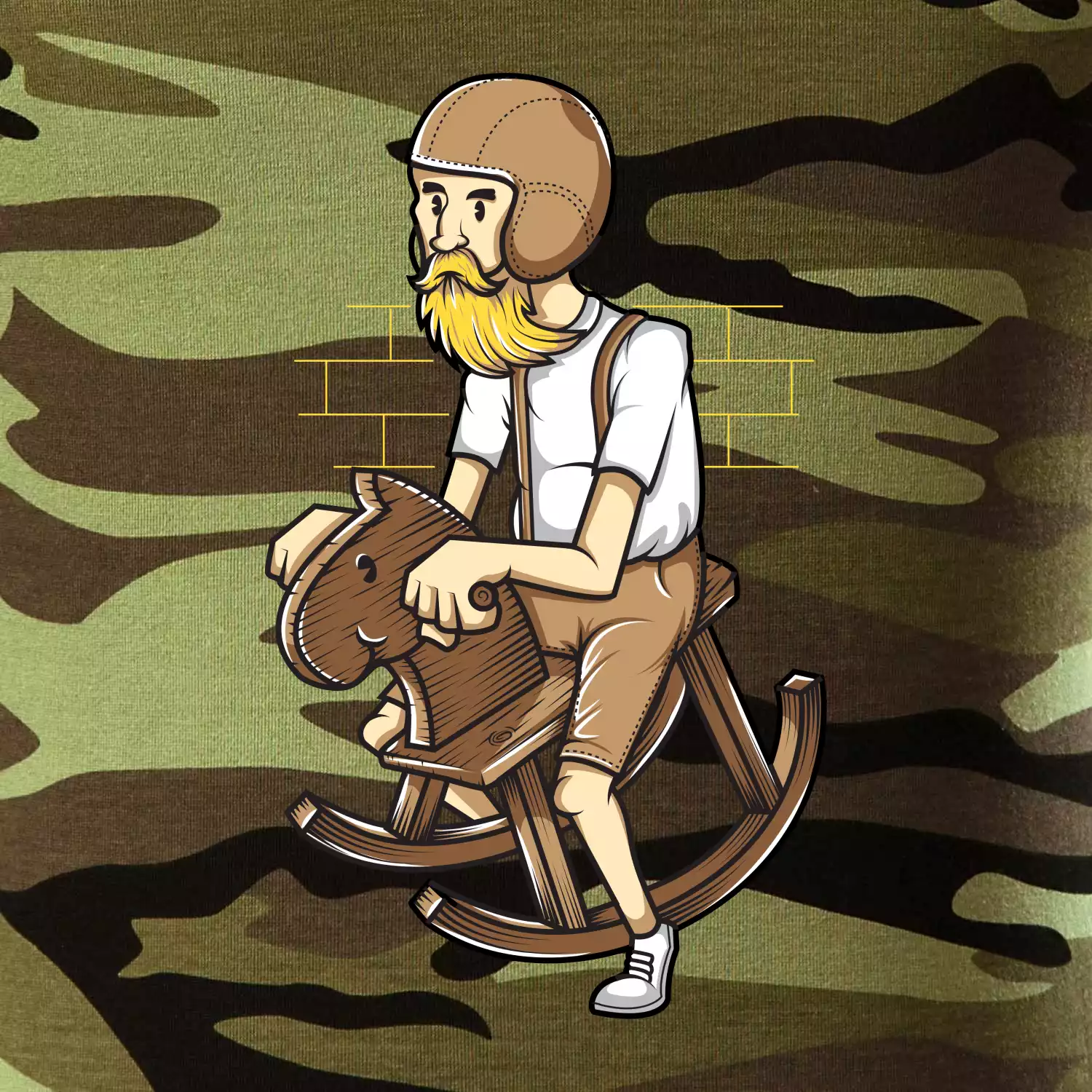 Tričko strednej gramáže vo farbách camouflage. Strih s bočnými švami. Lem priekrčníku z rebrového úpletu s prídavkom 5% elastanu. Vnútorná časť zadného priekrčníka začistená páskou vo farbe camouflage.