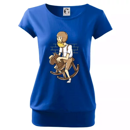 Trendové dámske tričko s veľmi krátkym rukávom, voľnejšieho strihu, v dolnom kraji všité do širokého lemu. Okrúhly priekrčník s úzkym lemom zo zhodného materiálu.
