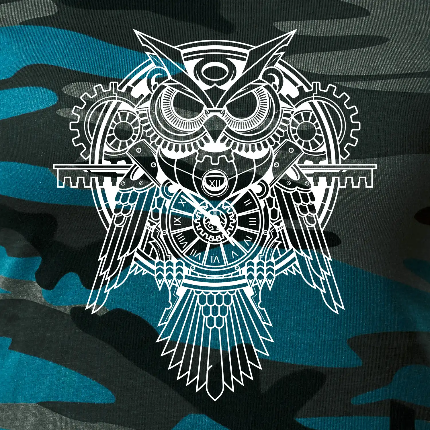 Steampunk sova čiernobiela