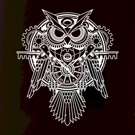 Steampunk sova čiernobiela