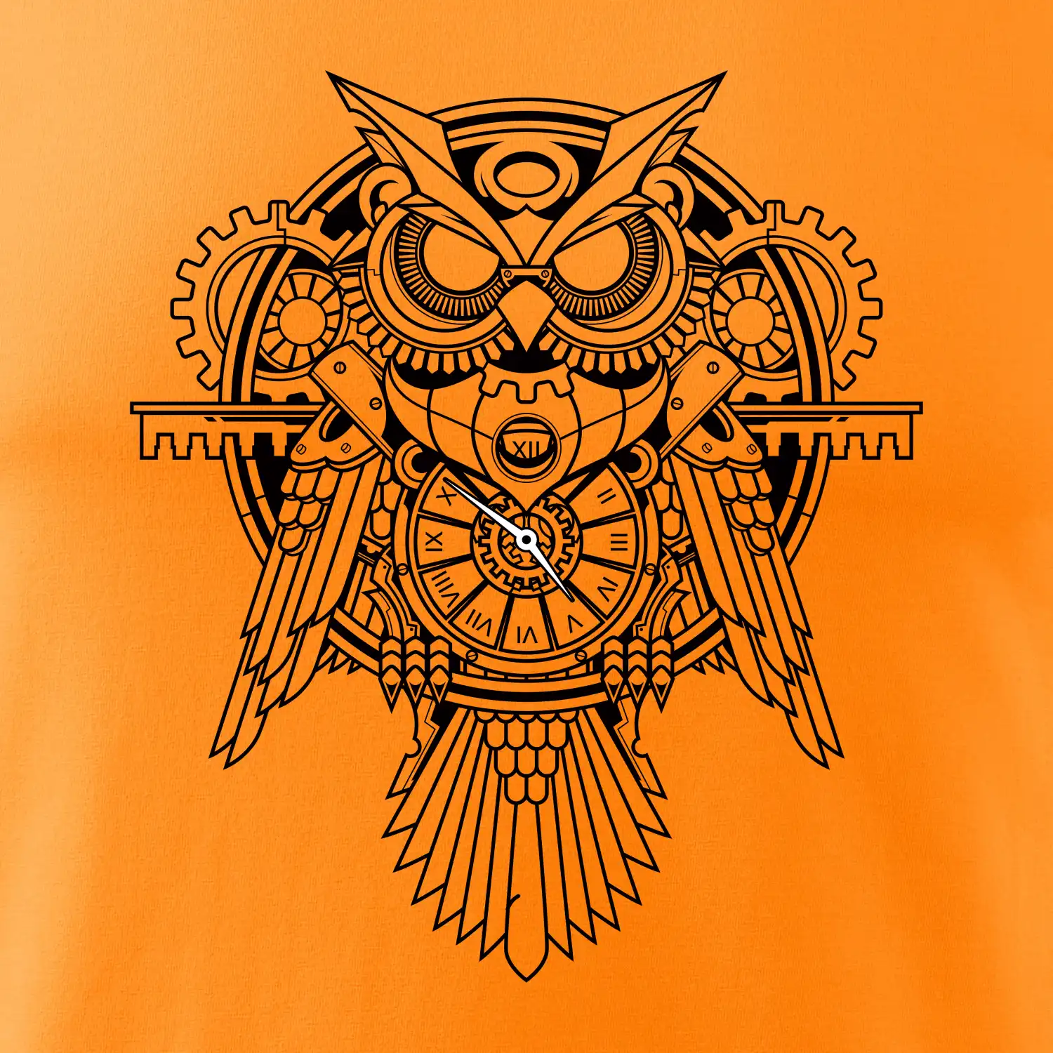 Steampunk sova čiernobiela