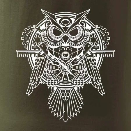 Steampunk sova čiernobiela