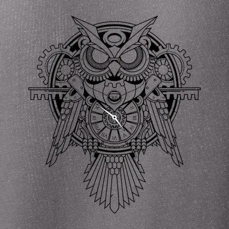 Steampunk sova čiernobiela