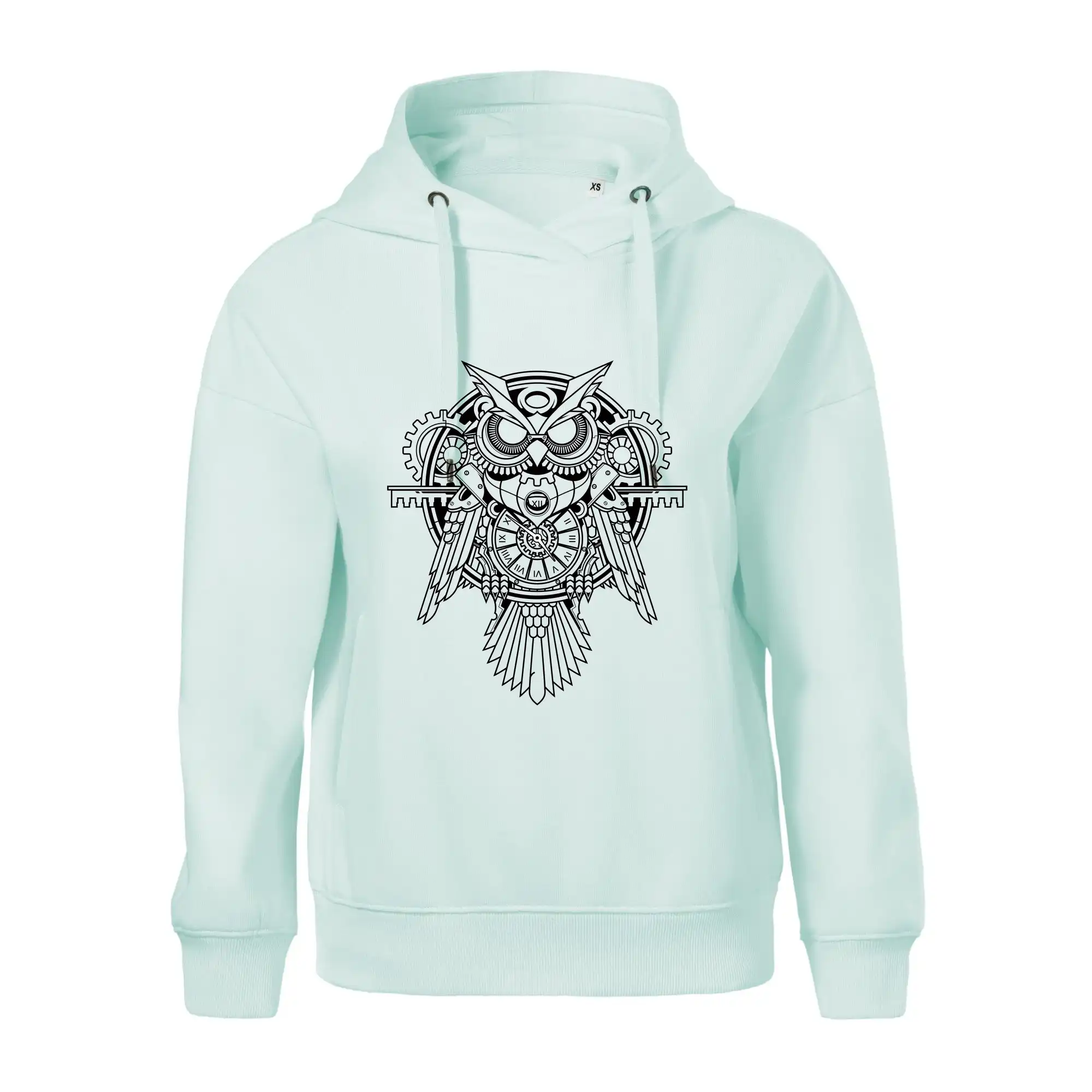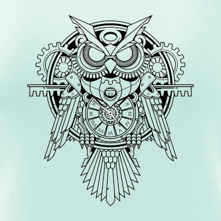 Steampunk sova čiernobiela