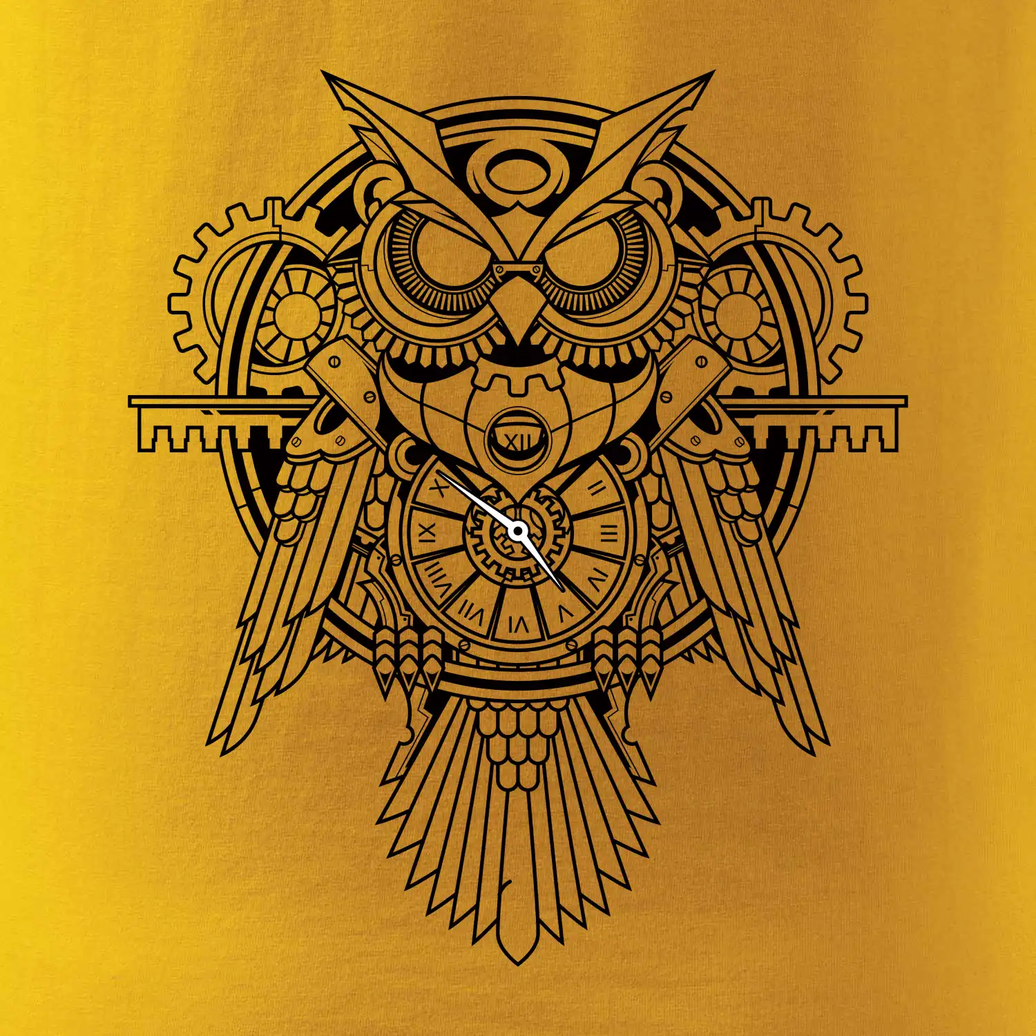 Steampunk sova čiernobiela