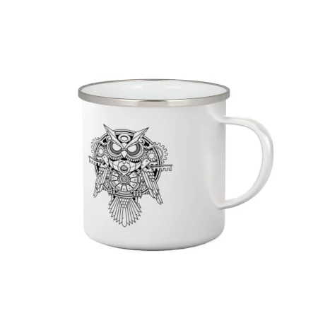 Steampunk sova čiernobiela