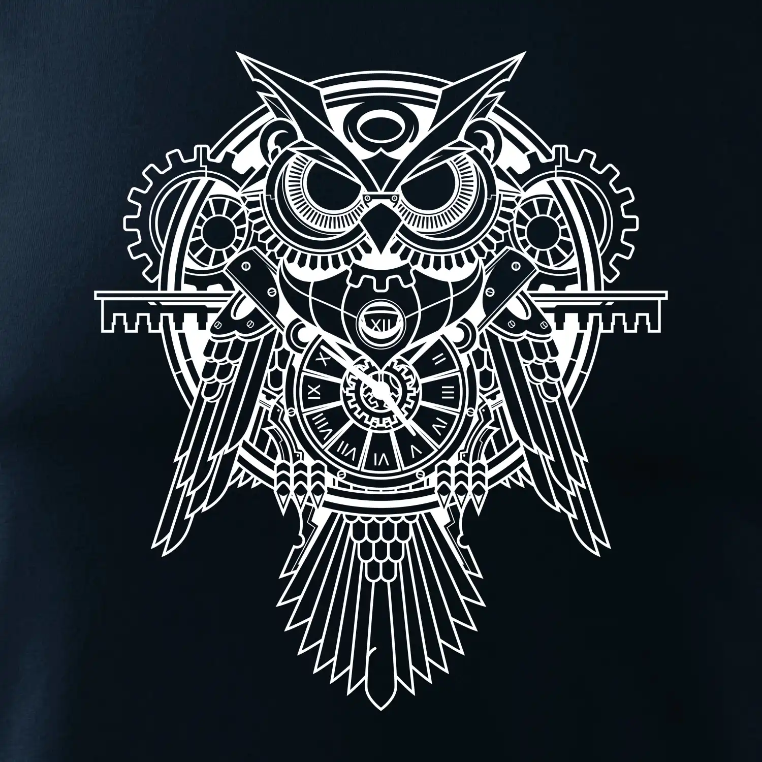 Steampunk sova čiernobiela