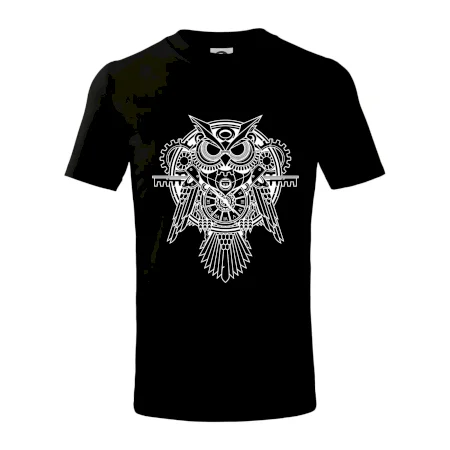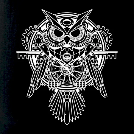 Steampunk sova čiernobiela