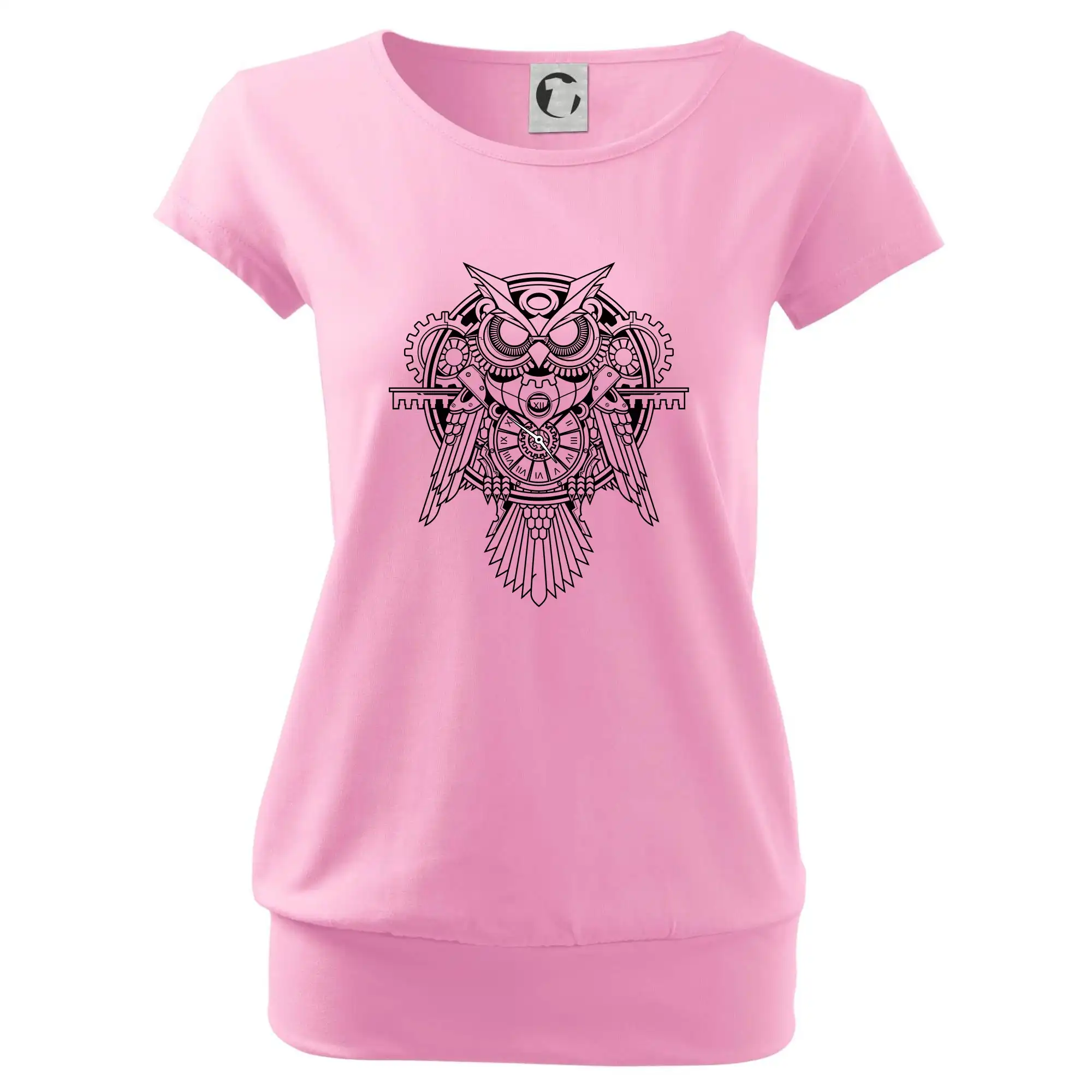 Trendové dámske tričko s veľmi krátkym rukávom, voľnejšieho strihu, v dolnom kraji všité do širokého lemu. Okrúhly priekrčník s úzkym lemom zo zhodného materiálu.