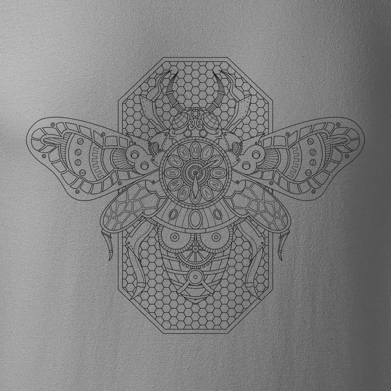Steampunk včela čiernobiela