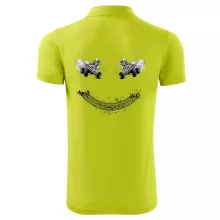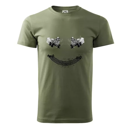 Tričko pre motoristov, na ktorom nie je len jedna off road štvorkolka, ale hneď dve, je skvelý darček pre motoristov. Stopa pneumatiky spolu so štvorkolkami tvoria smajlíka. Tričko so štvorkolkou by mal mať doma každý správny off-road motorista. Tričko so štvorkolkou je vhodný darček pre motoristu.