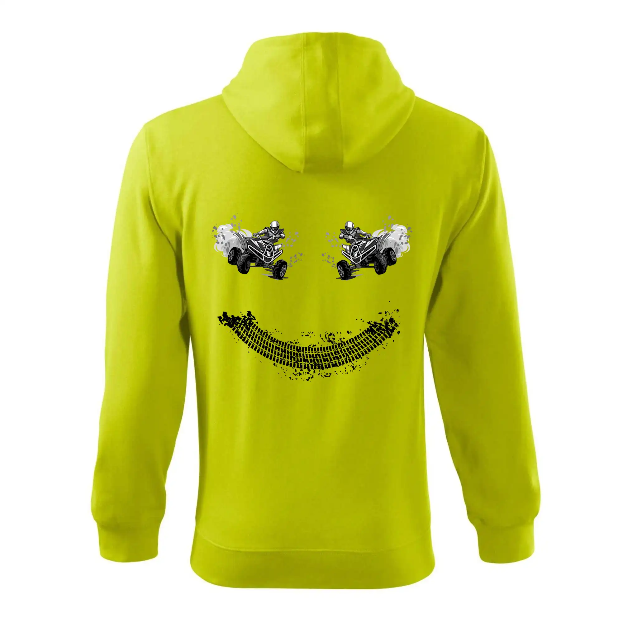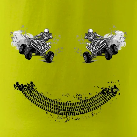 Tričko pre motoristov, na ktorom nie je len jedna off road štvorkolka, ale hneď dve, je skvelý darček pre motoristov. Stopa pneumatiky spolu so štvorkolkami tvoria smajlíka. Tričko so štvorkolkou by mal mať doma každý správny off-road motorista. Tričko so štvorkolkou je vhodný darček pre motoristu.