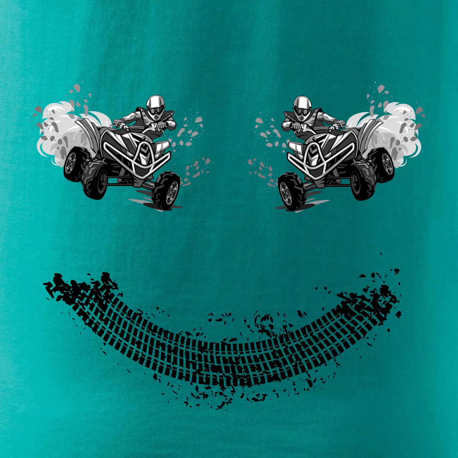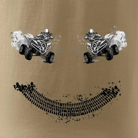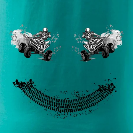 Tričko pre motoristov, na ktorom nie je len jedna off road štvorkolka, ale hneď dve, je skvelý darček pre motoristov. Stopa pneumatiky spolu so štvorkolkami tvoria smajlíka. Tričko so štvorkolkou by mal mať doma každý správny off-road motorista. Tričko so štvorkolkou je vhodný darček pre motoristu.