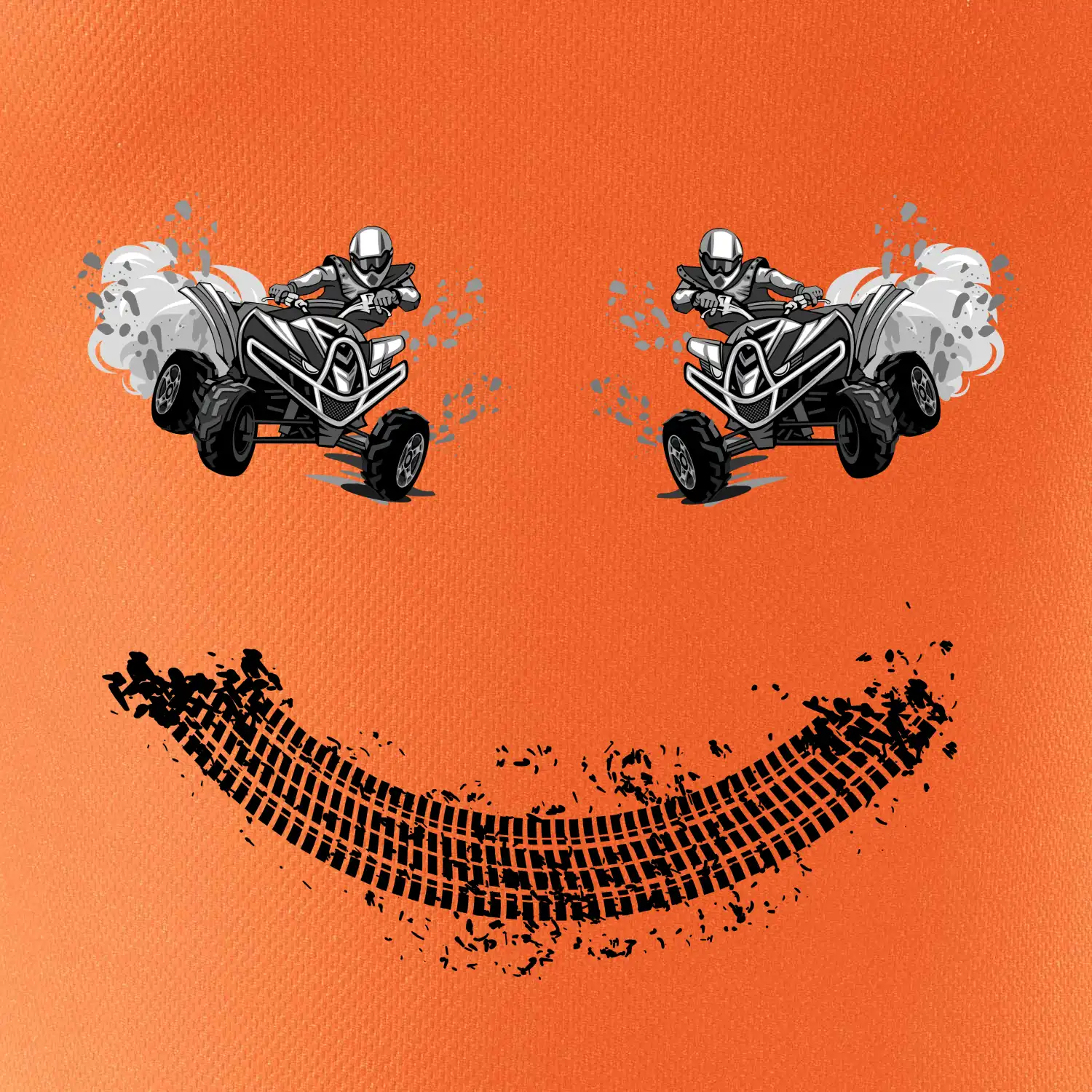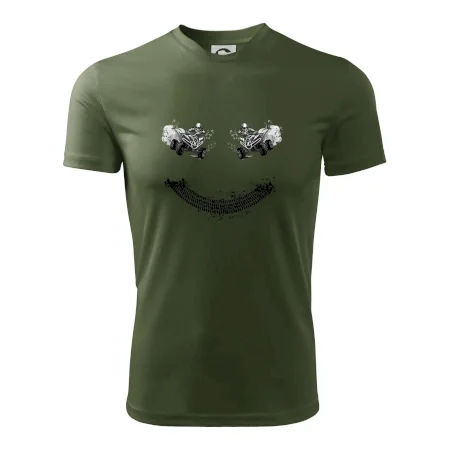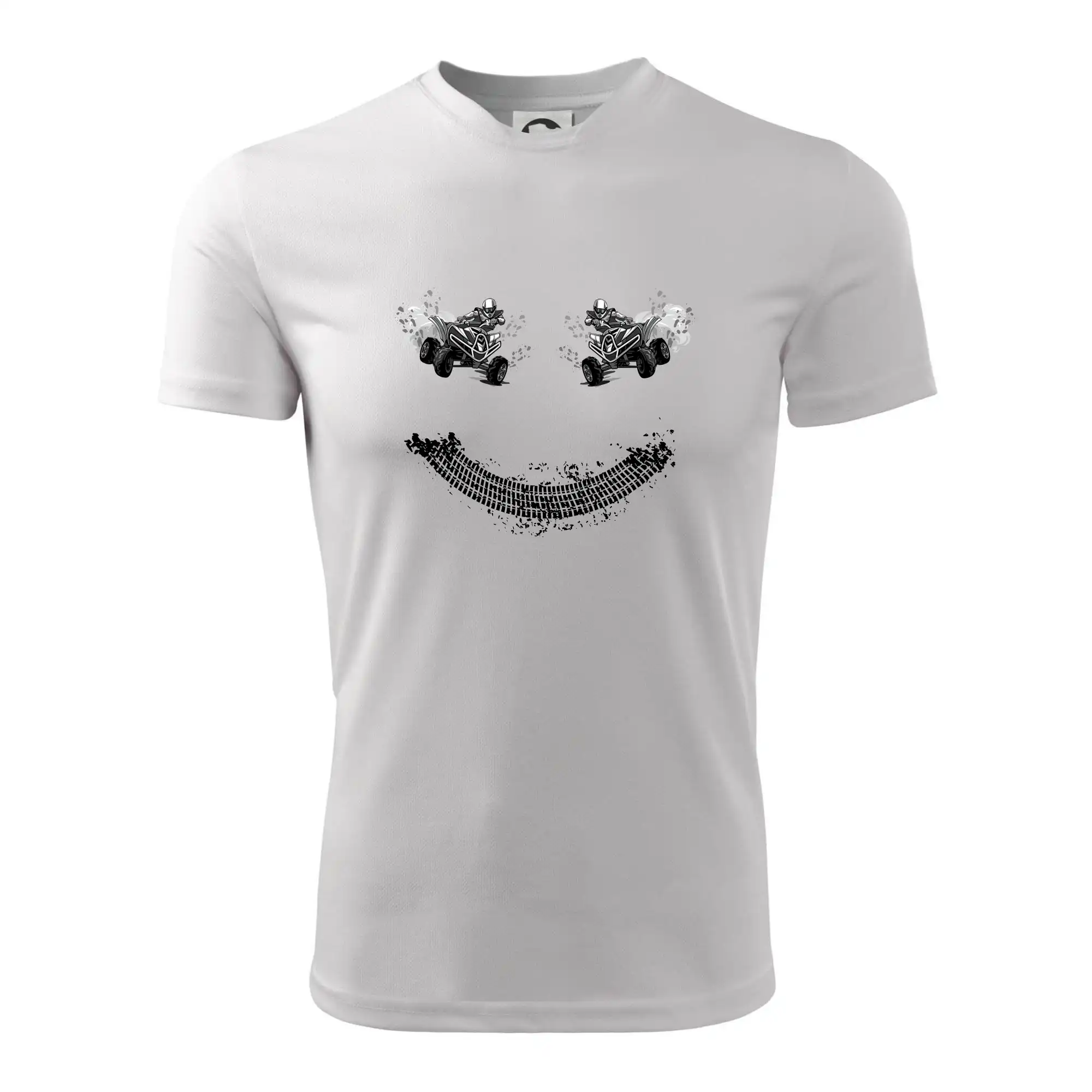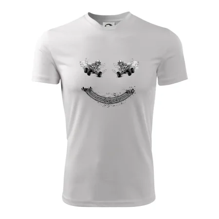Tričko pre motoristov, na ktorom nie je len jedna off road štvorkolka, ale hneď dve, je skvelý darček pre motoristov. Stopa pneumatiky spolu so štvorkolkami tvoria smajlíka. Tričko so štvorkolkou by mal mať doma každý správny off-road motorista. Tričko so štvorkolkou je vhodný darček pre motoristu.