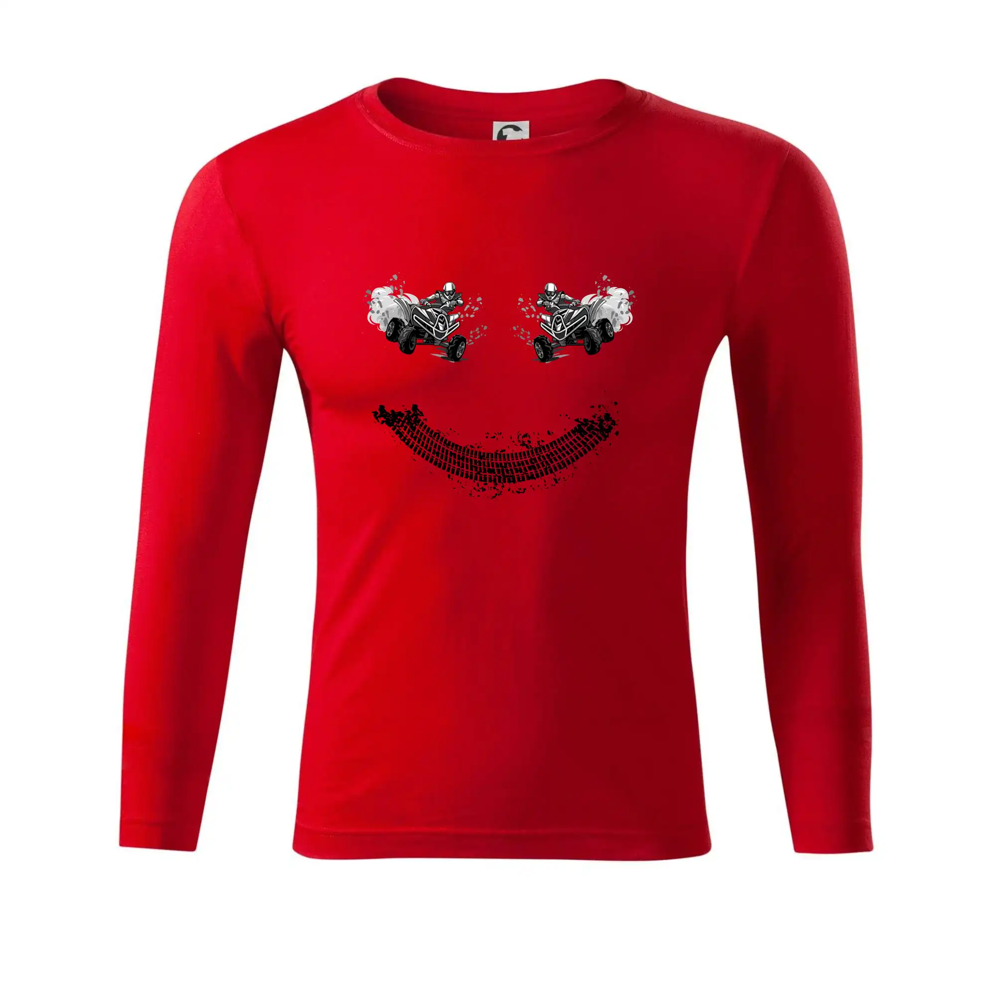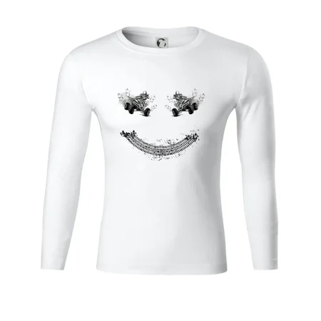 Tričko pre motoristov, na ktorom nie je len jedna off road štvorkolka, ale hneď dve, je skvelý darček pre motoristov. Stopa pneumatiky spolu so štvorkolkami tvoria smajlíka. Tričko so štvorkolkou by mal mať doma každý správny off-road motorista. Tričko so štvorkolkou je vhodný darček pre motoristu.