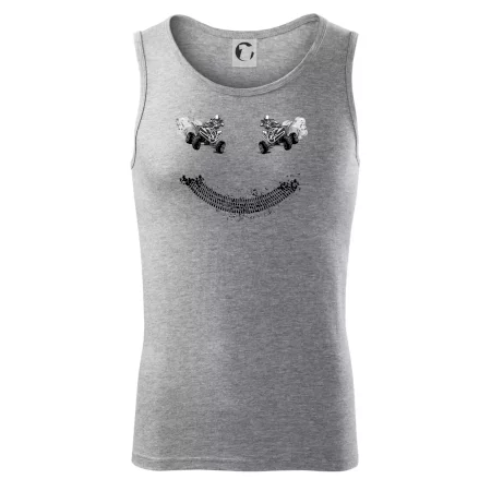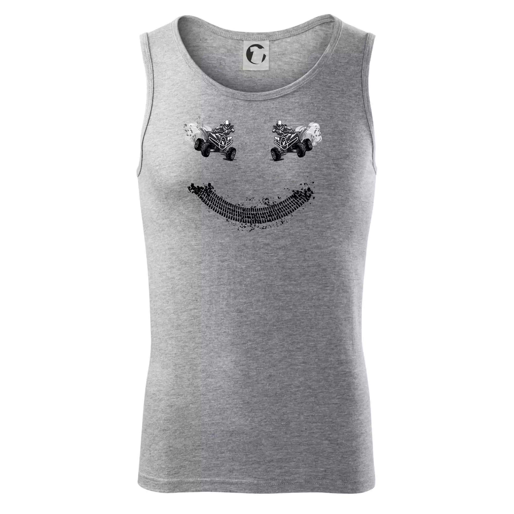 Tričko pre motoristov, na ktorom nie je len jedna off road štvorkolka, ale hneď dve, je skvelý darček pre motoristov. Stopa pneumatiky spolu so štvorkolkami tvoria smajlíka. Tričko so štvorkolkou by mal mať doma každý správny off-road motorista. Tričko so štvorkolkou je vhodný darček pre motoristu.
