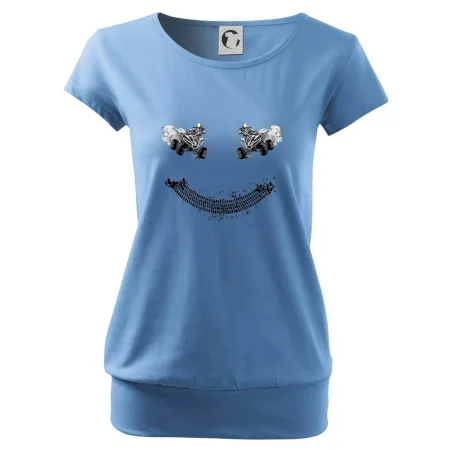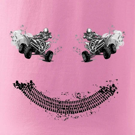 Tričko pre motoristov, na ktorom nie je len jedna off road štvorkolka, ale hneď dve, je skvelý darček pre motoristov. Stopa pneumatiky spolu so štvorkolkami tvoria smajlíka. Tričko so štvorkolkou by mal mať doma každý správny off-road motorista. Tričko so štvorkolkou je vhodný darček pre motoristu.