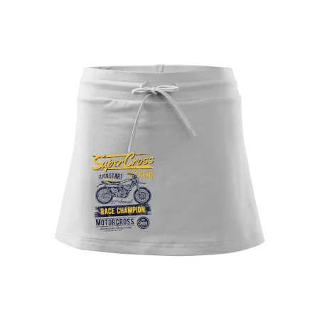Dámska kraťasová sukňa MALFINI Two in One 604 je perfektnou kombináciou sukne a šortiek, ideálna na šport, voľný čas alebo ležérne nosenie. Vďaka prídavku elastanu si sukňa zachováva tvar a ponúka pohodlie pri pohybe. Krátky strih do tvaru „A“ a široký elastický pás so sťahovacou šnúrkou zabezpečujú voľnosť a prispôsobenie.