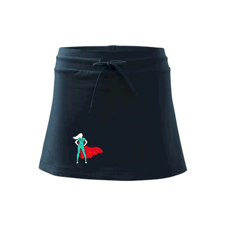 Dámska kraťasová sukňa MALFINI Two in One 604 je perfektnou kombináciou sukne a šortiek, ideálna na šport, voľný čas alebo ležérne nosenie. Vďaka prídavku elastanu si sukňa zachováva tvar a ponúka pohodlie pri pohybe. Krátky strih do tvaru „A“ a široký elastický pás so sťahovacou šnúrkou zabezpečujú voľnosť a prispôsobenie.