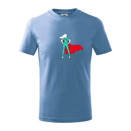 Detské tričko strednej gramáže s bočnými švami. Úzky priekrčník s prídavkom 5% elastanu. Vnútorná časť zadného priekrčníka začistená tkanou páskou. Spevnený ramenný šev.