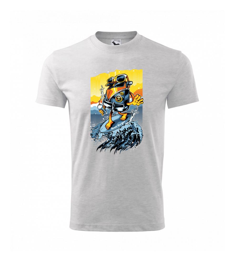 Tričko pre surferov, ktorí sa neboja vziať karavan a vyraziť smer more. S týmto tričkom Ti pri surfovaní neunikne žiadna vlna. Surferske tričko je vhodný darček pre surferov.