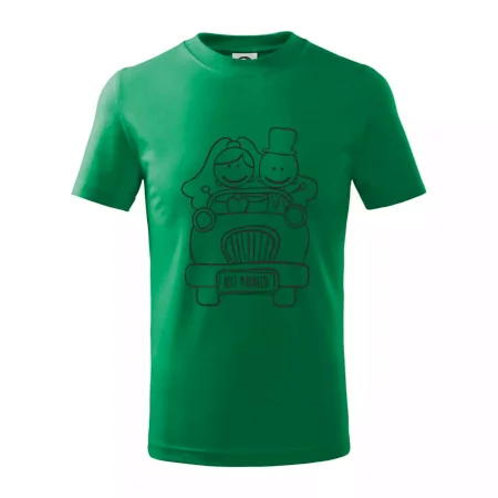 Detské tričko strednej gramáže s bočnými švami. Úzky priekrčník s prídavkom 5% elastanu. Vnútorná časť zadného priekrčníka začistená tkanou páskou. Spevnený ramenný šev.