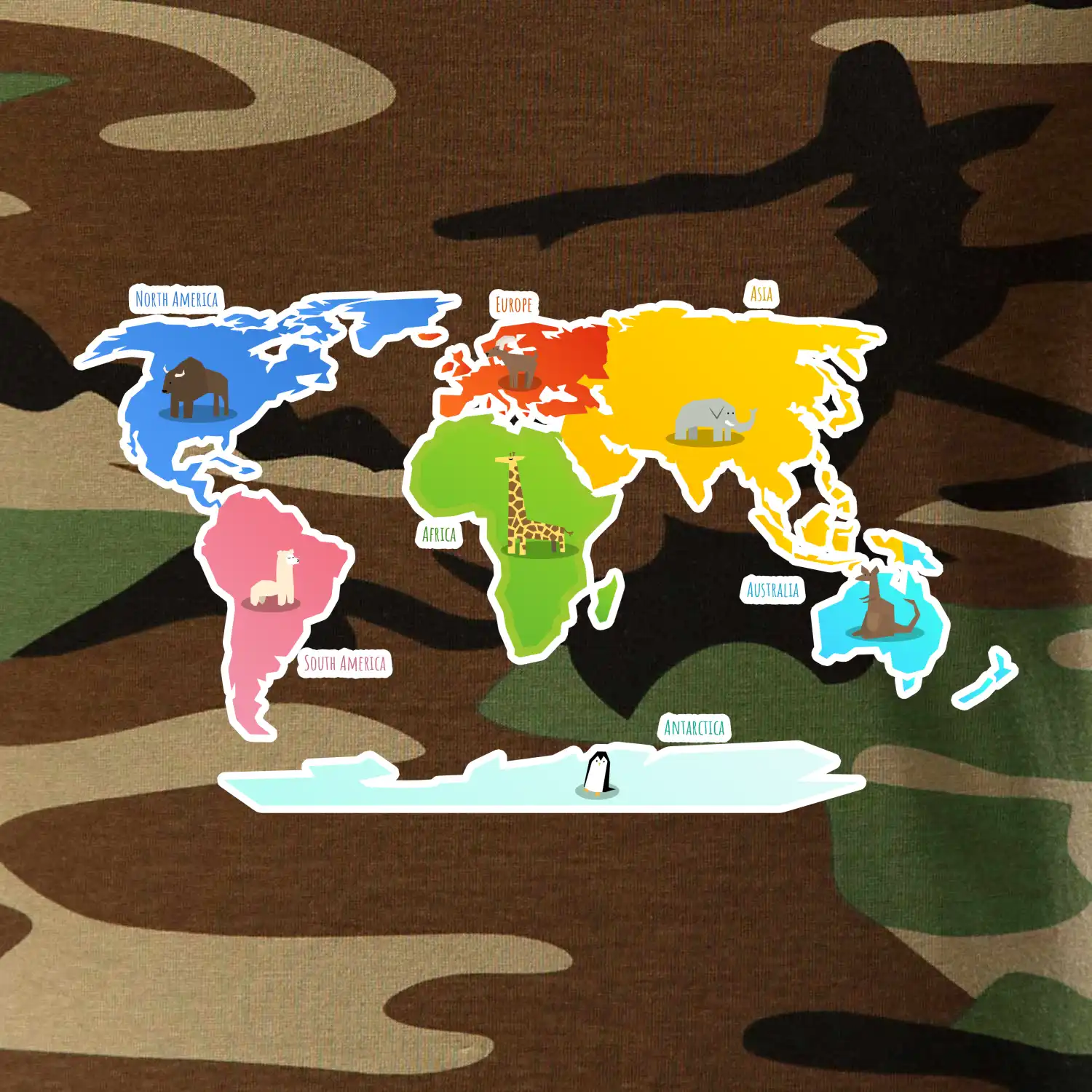 Svetové kontinenty s názvami a zvieratkami