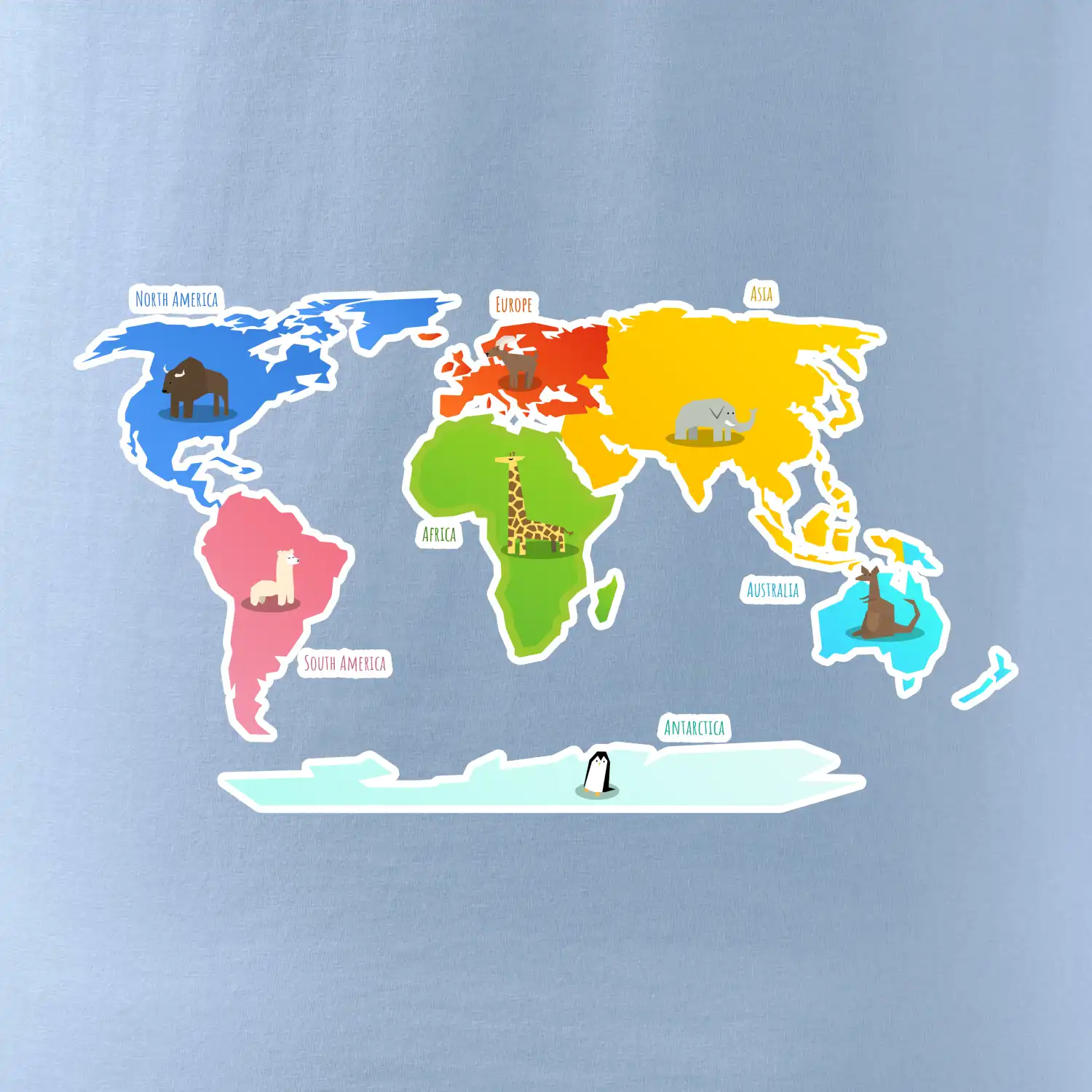 Svetové kontinenty s názvami a zvieratkami