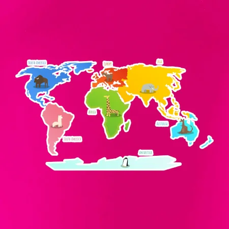 Svetové kontinenty s názvami a zvieratkami