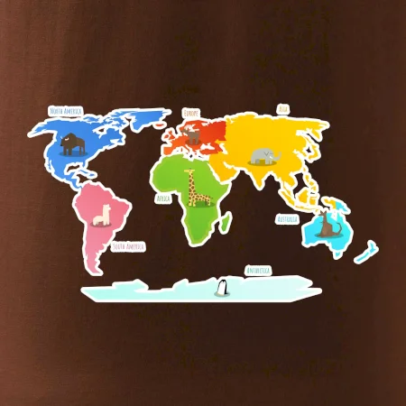 Tričko pre učiteľa zemepisu alebo milovníka cestovania, na ktorom j mapa sveta. Máš rád cestovanie? Kúp si toto tričko a môžeš si odškrtnúť, kde všade si už bol. na tričko budeš mať všetky kontinenty - Európa, Ázia, Afrika, Sverná a Južná Amerika a tiež Austrália. S mapou sveta vždy po ruke môžeš vždy uskutočniť akékoľvek dobrodružné výpravy a už sa nikdy nestratíš!