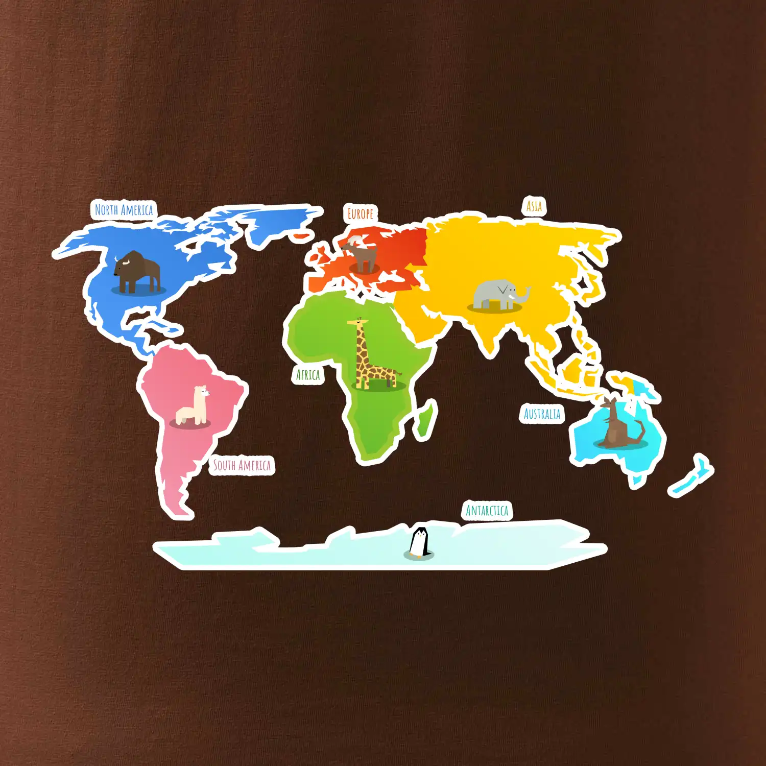 Svetové kontinenty s názvami a zvieratkami
