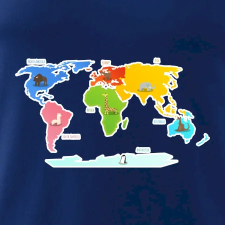 Tričko pre učiteľa zemepisu alebo milovníka cestovania, na ktorom j mapa sveta. Máš rád cestovanie? Kúp si toto tričko a môžeš si odškrtnúť, kde všade si už bol. na tričko budeš mať všetky kontinenty - Európa, Ázia, Afrika, Sverná a Južná Amerika a tiež Austrália. S mapou sveta vždy po ruke môžeš vždy uskutočniť akékoľvek dobrodružné výpravy a už sa nikdy nestratíš!