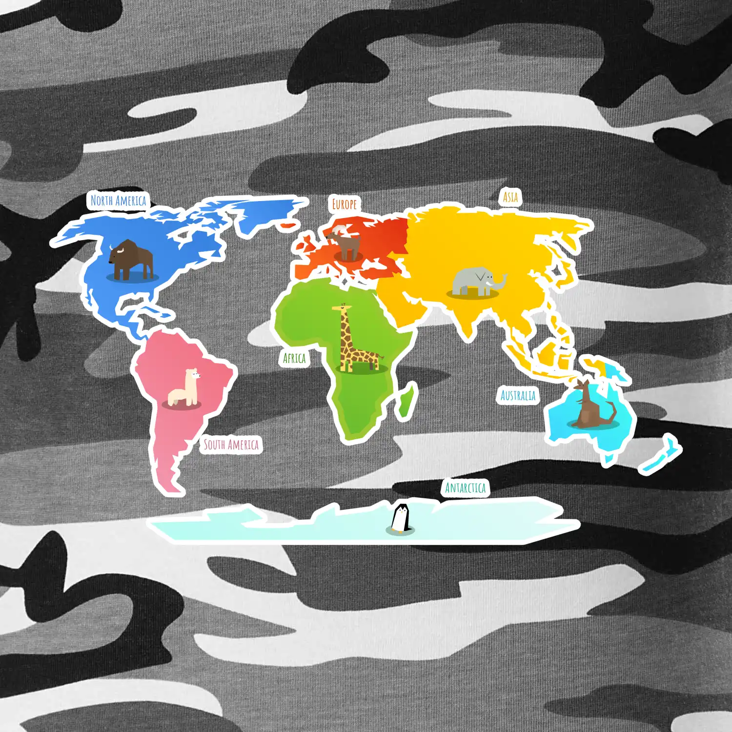 Svetové kontinenty s názvami a zvieratkami