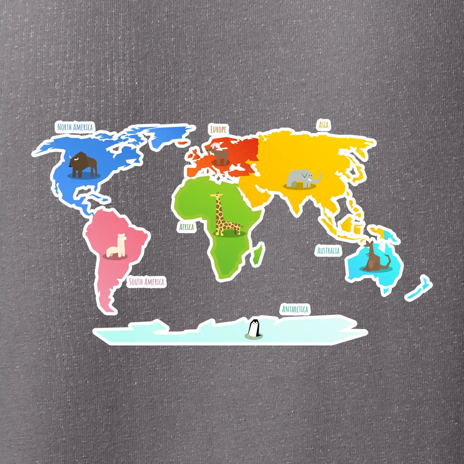 Svetové kontinenty s názvami a zvieratkami