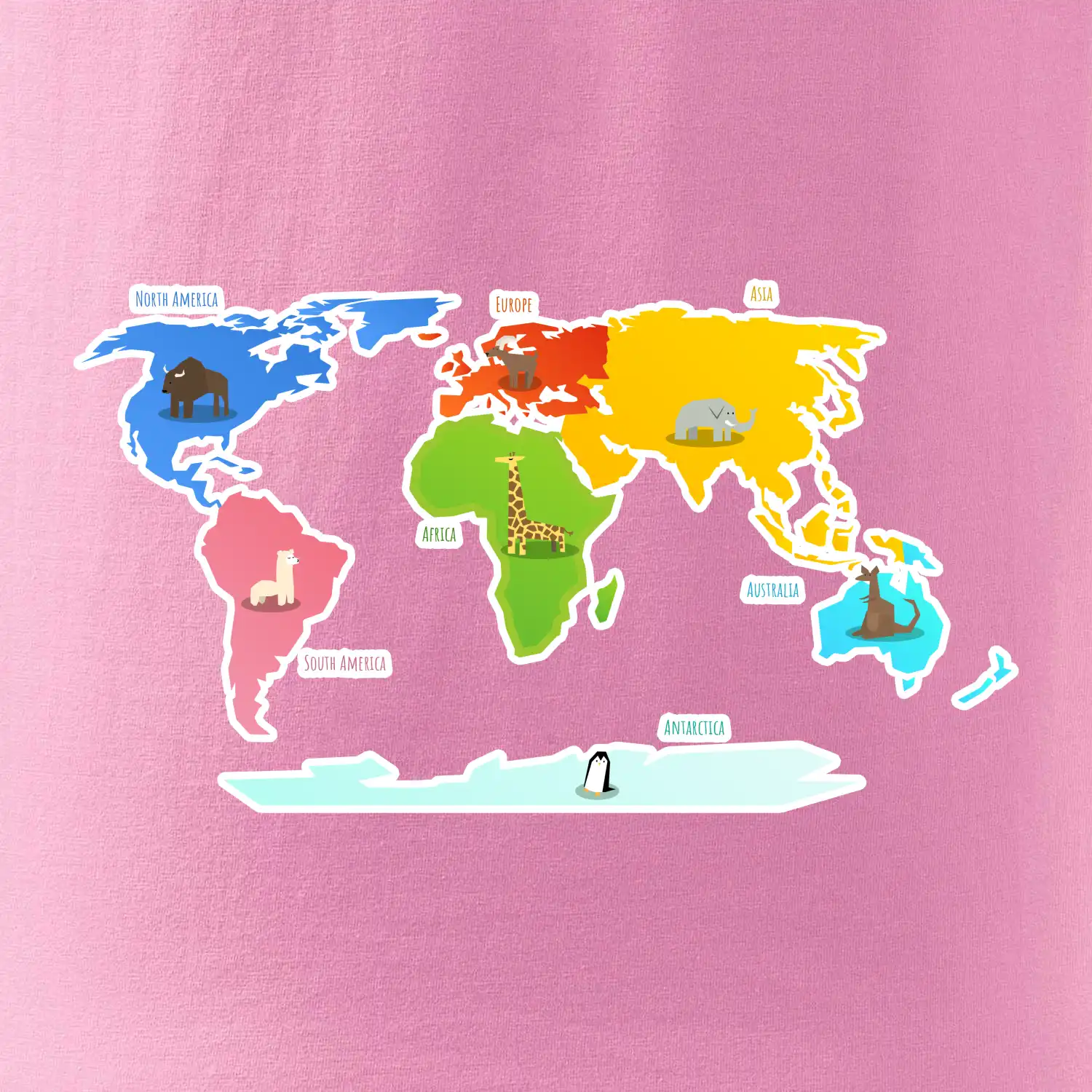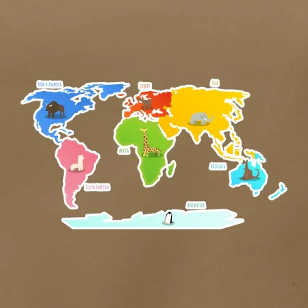 Svetové kontinenty s názvami a zvieratkami