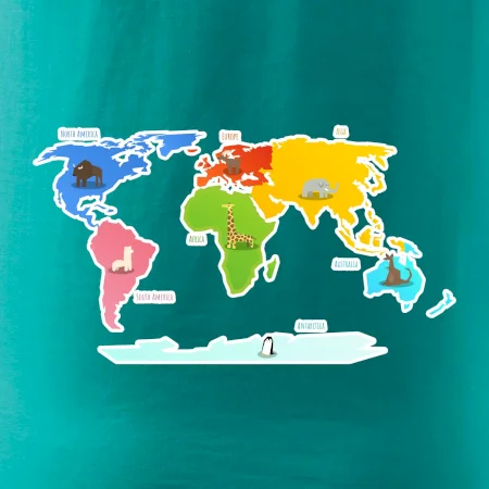 Svetové kontinenty s názvami a zvieratkami