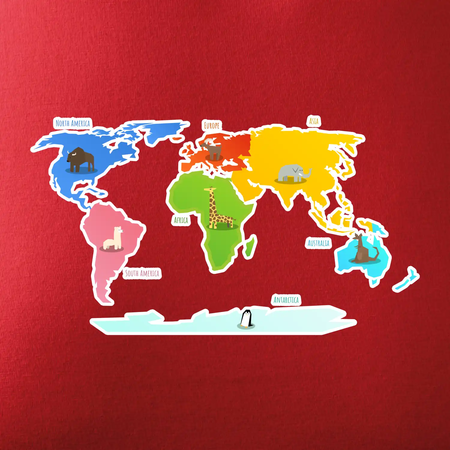 Svetové kontinenty s názvami a zvieratkami
