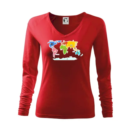 Tričko pre učiteľa zemepisu alebo milovníka cestovania, na ktorom j mapa sveta. Máš rád cestovanie? Kúp si toto tričko a môžeš si odškrtnúť, kde všade si už bol. na tričko budeš mať všetky kontinenty - Európa, Ázia, Afrika, Sverná a Južná Amerika a tiež Austrália. S mapou sveta vždy po ruke môžeš vždy uskutočniť akékoľvek dobrodružné výpravy a už sa nikdy nestratíš!